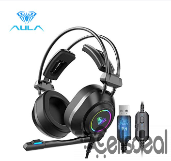 Product details of Aula S600 Gaming Headset 7.1 Surround Sound Headphone Microphone LED Backlight Wired Over Ear Headphone Earmuffs PC Games Headsets (USB)